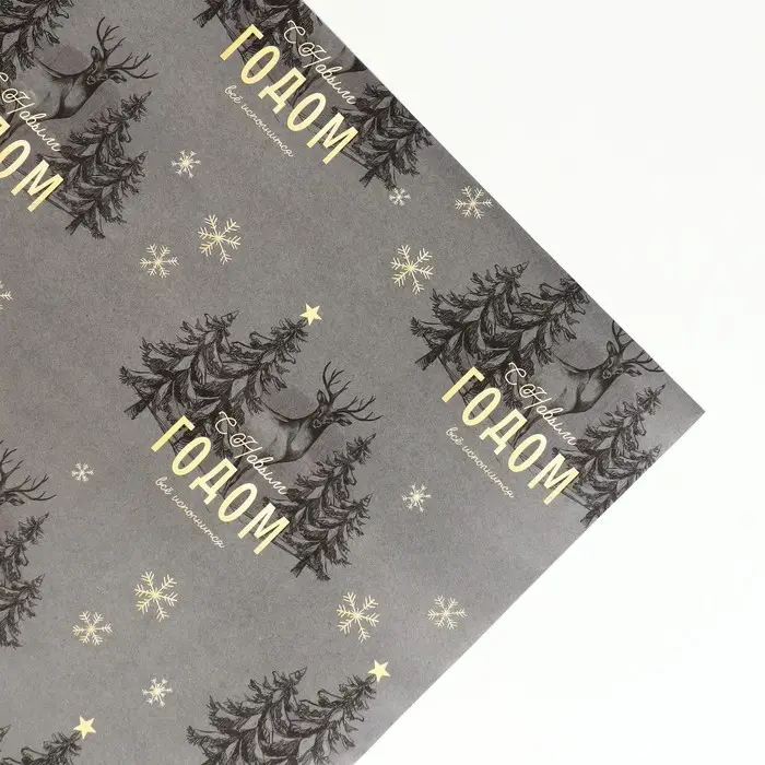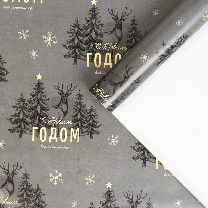 Бумага упаковочная глянцевая «Олени в лесу», 70 х 100 см