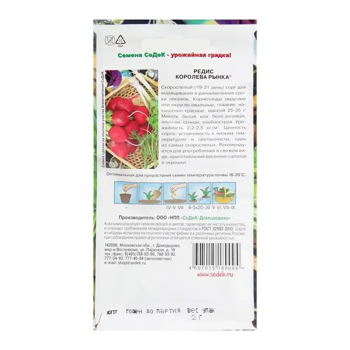 Семена Редис "Королева Рынка" 2г