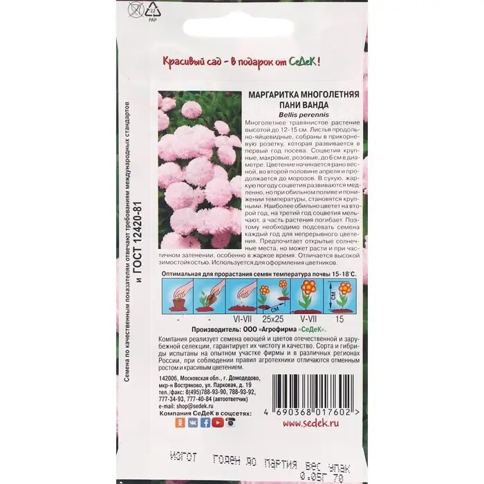 Семена Цветов Маргаритка "Пани Ванда "0.05 г