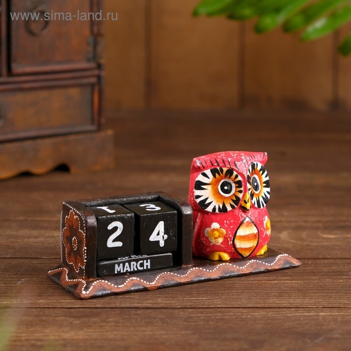 Календарь настольный дерево "Розовая сова" 15х6х7 см