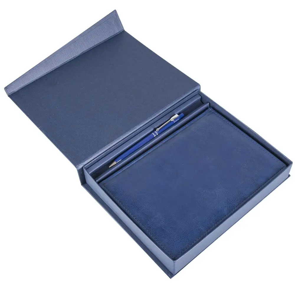 Коробка Silk с ложементом под ежедневник и ручку, ver. 2, синяя