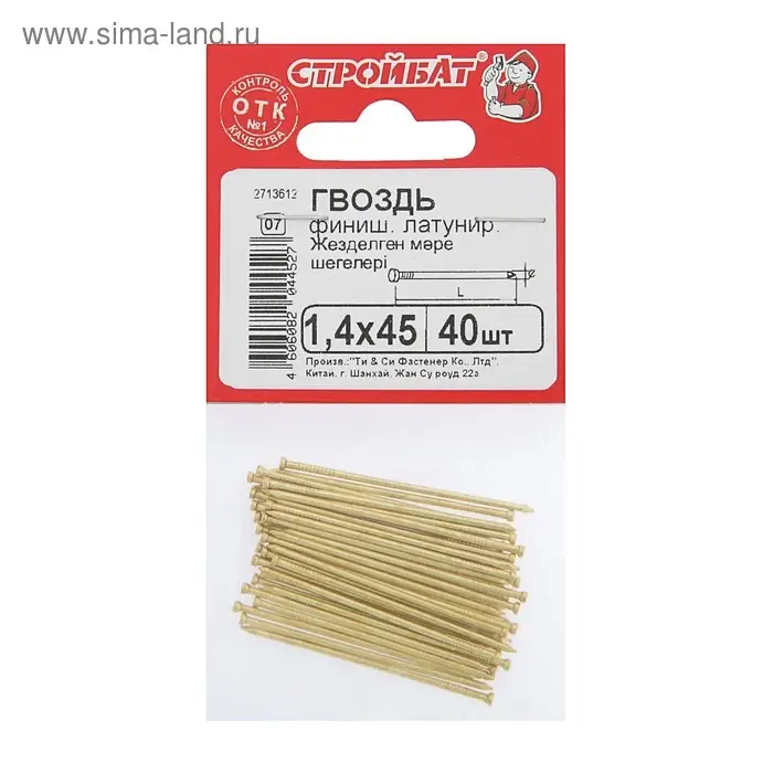 Гвозди СТРОЙБАТ, финишные, ГОСТ 7811-7035, латунированные, 1,4x45 мм, 40 шт