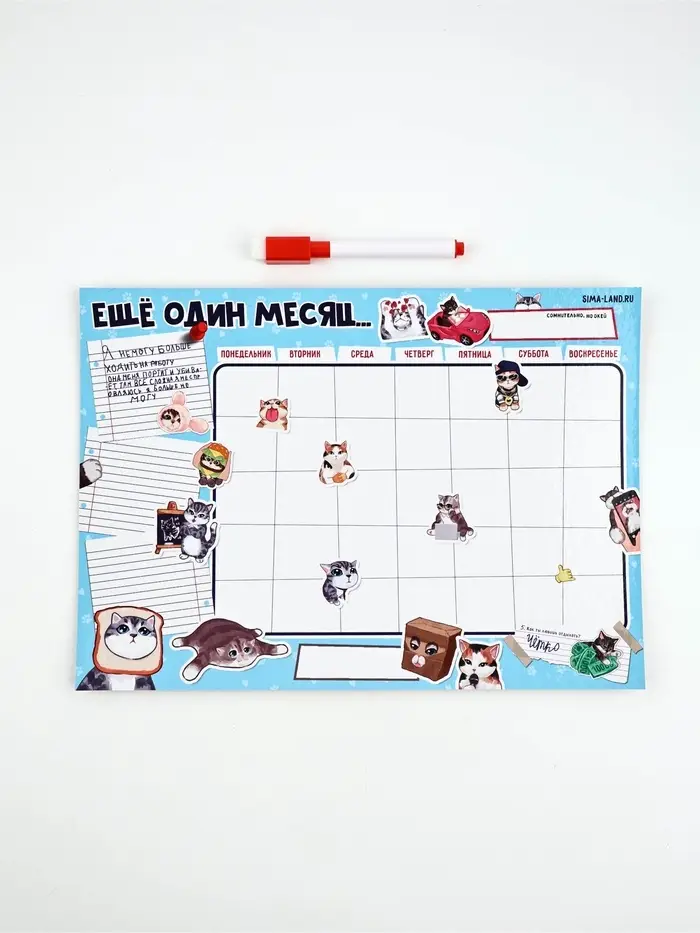Магнитный планер А4 и стирающийся маркер "Котики"