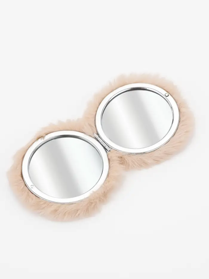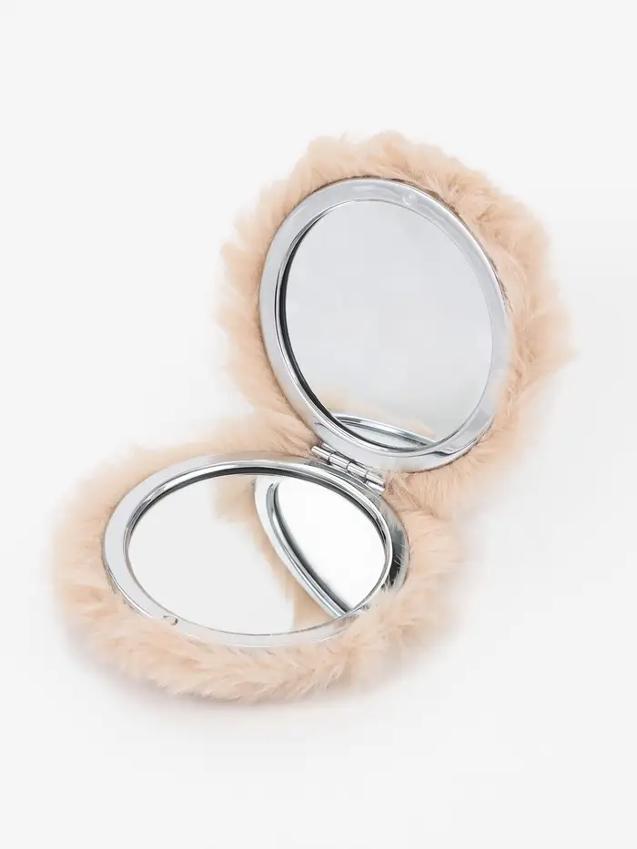 Зеркало складное круг (2) с/увел МЕХ d8см искусств мех/пластик бежевый пакет QF