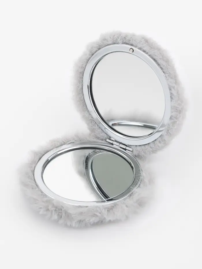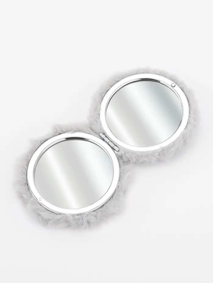 Зеркало складное «Мех», d=8 см, с увеличением, с искусственным мехом, серое