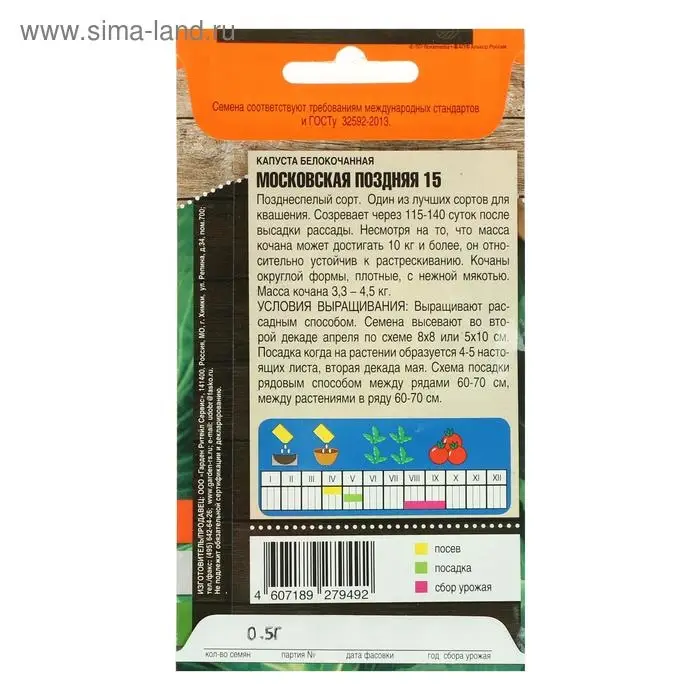 Семена Капуста белокочанная "Московская" поздняя 15, 0,5 г