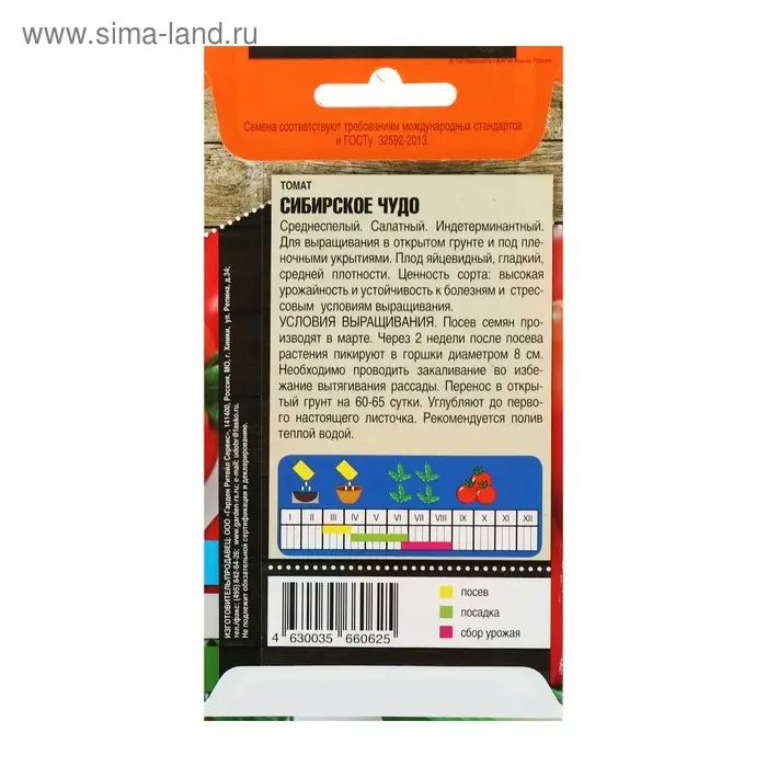 Семена Томат "Сибирское чудо", среднеспелый, 0,1 г
