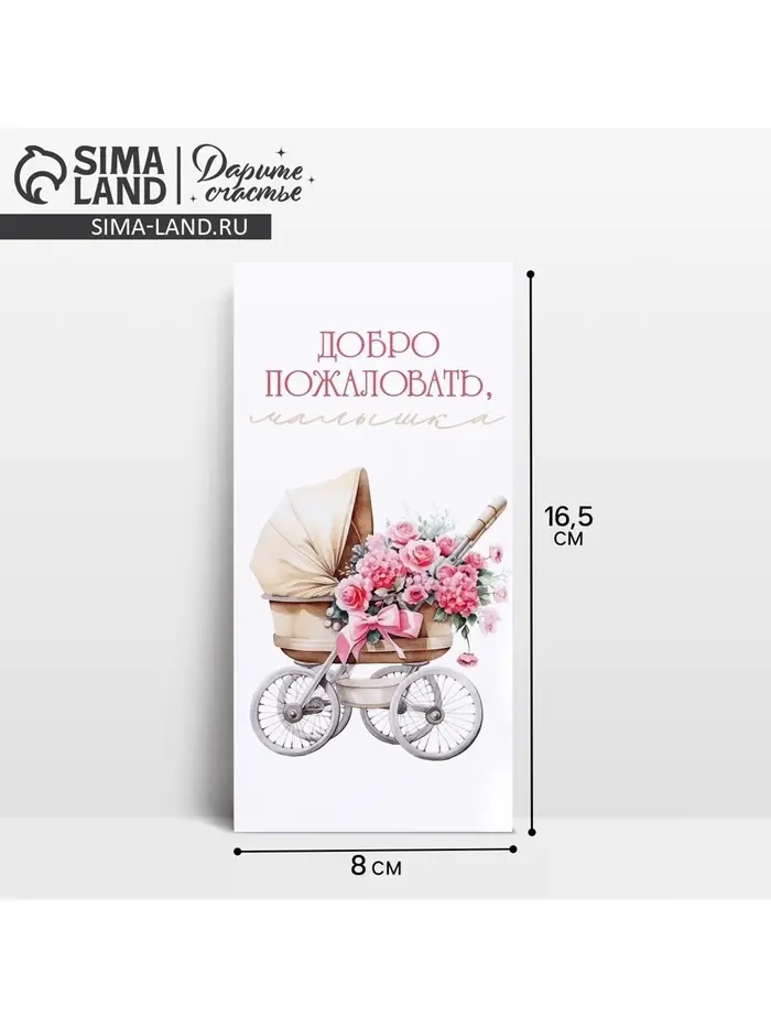 Конверт для денег «Добро пожаловать, малышка», 16.5×8 см