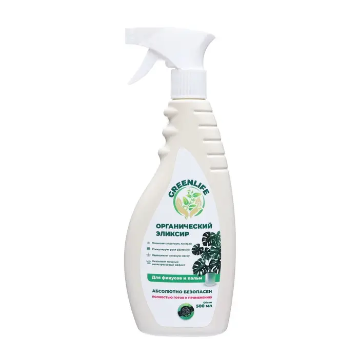 ""Green Life"" - это органический спрей, разработанный специально для ухода за фикусами и пальмами.