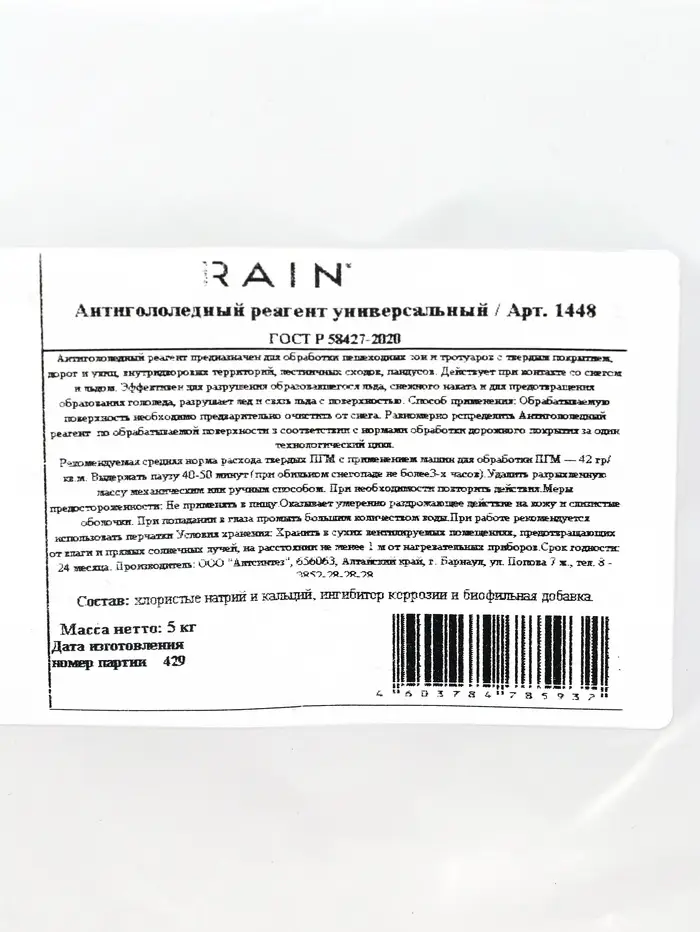 Sound of Rain Антигололедный реагент универсальный 5 кг (4шт/кор)