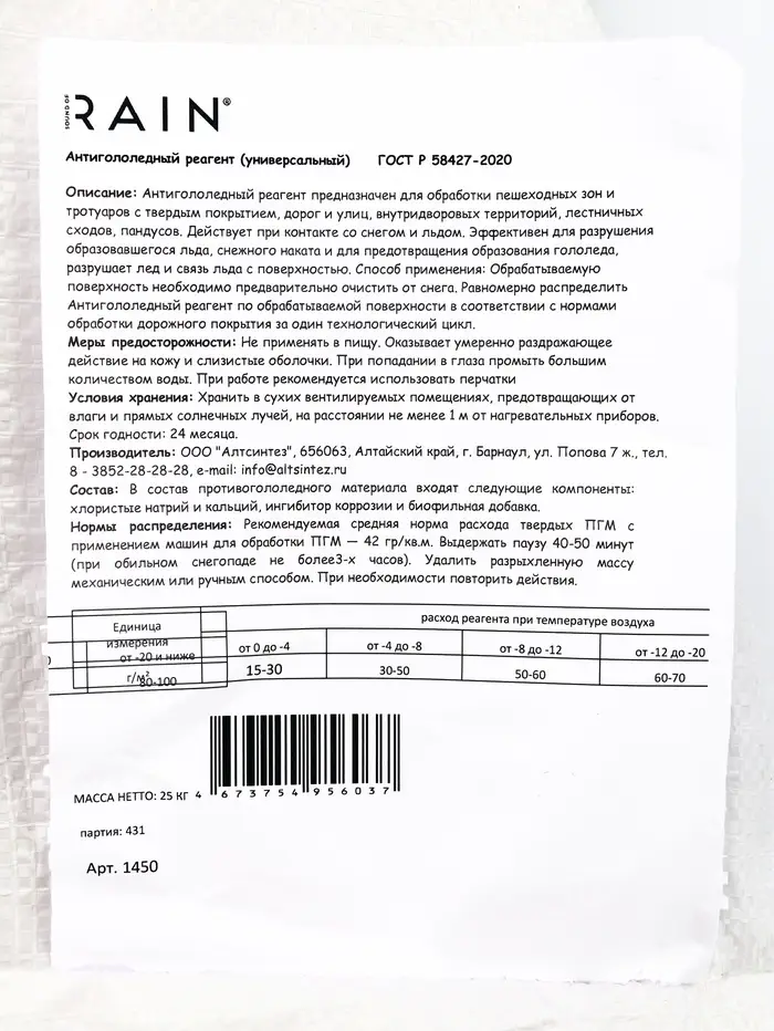 Sound of Rain Антигололедный реагент универсальный 25 кг