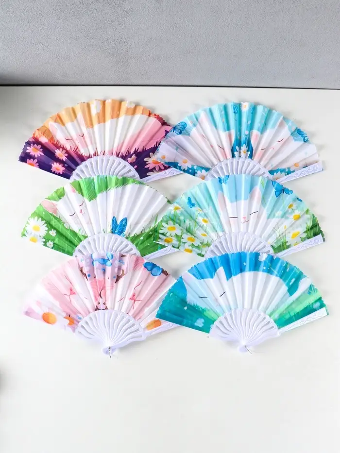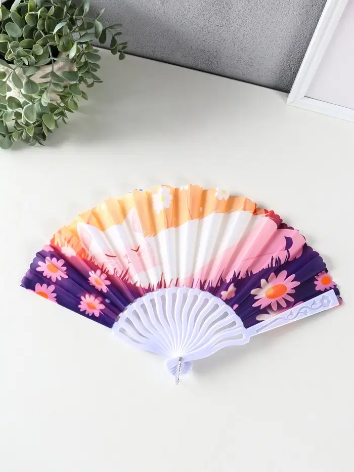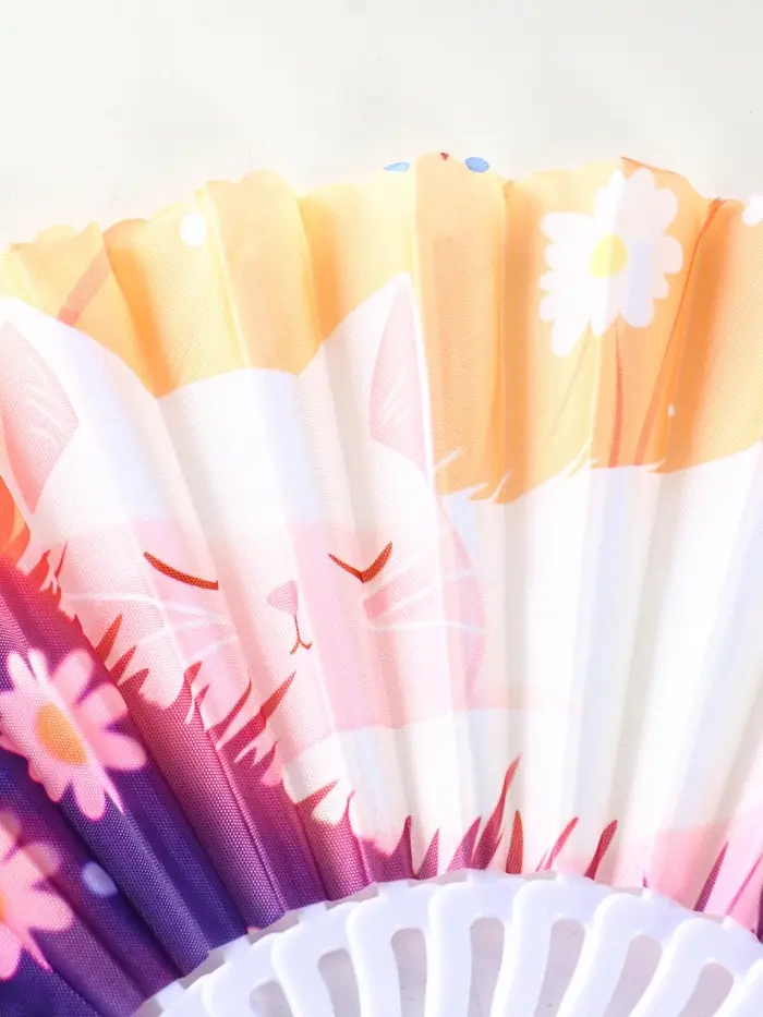 Веер пластик, текстиль "Спящие котики на полянке" МИКС 23 см