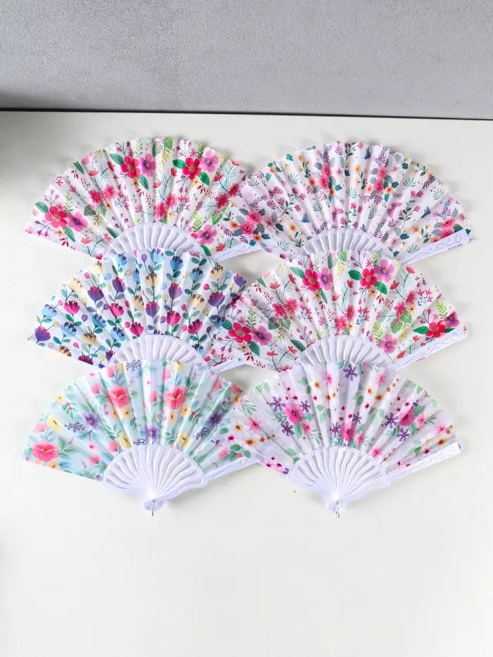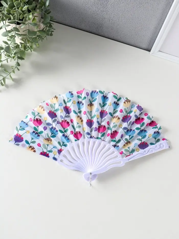 Веер пластик, текстиль "Ситец цветочный" МИКС 23 см