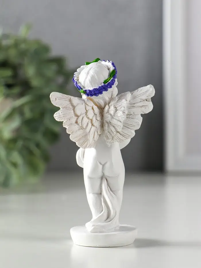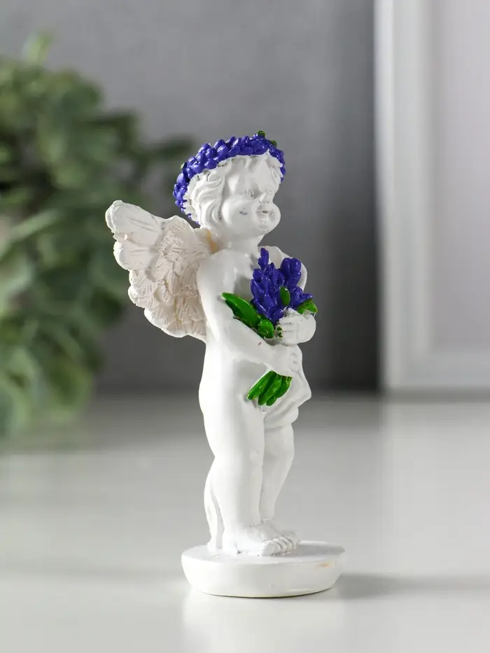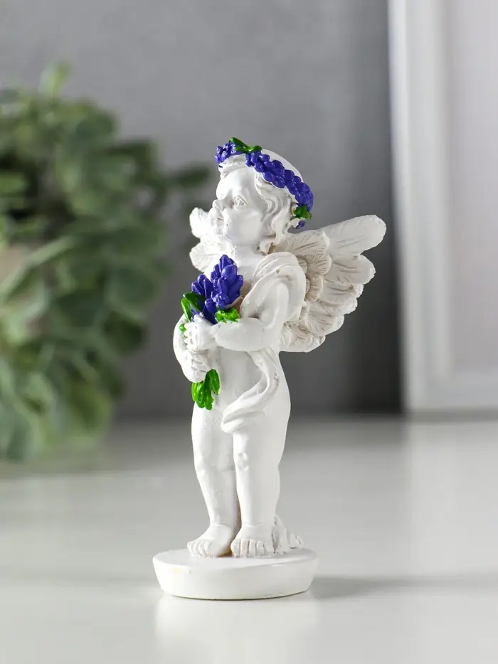 Сувенир полистоун "Ангел с букетом лаванды" бело-фиолетовый МИКС 5,7х3,5х10 см