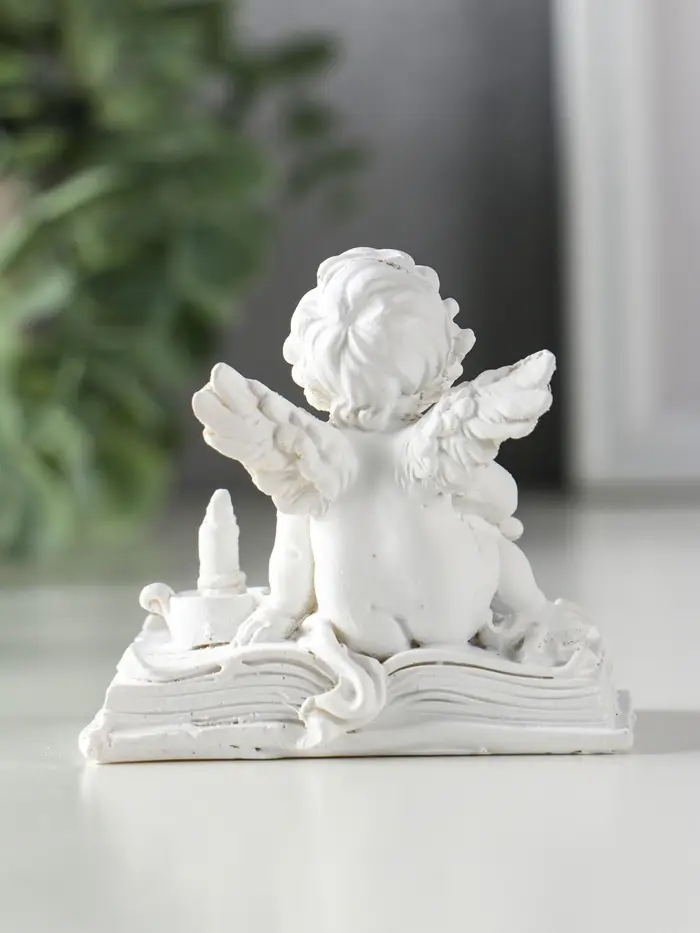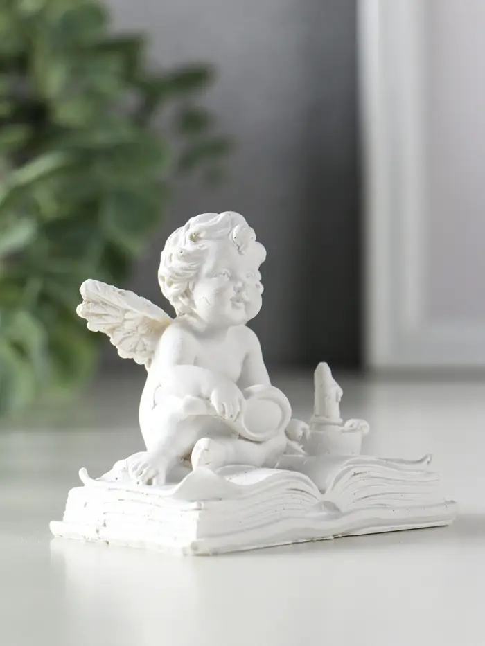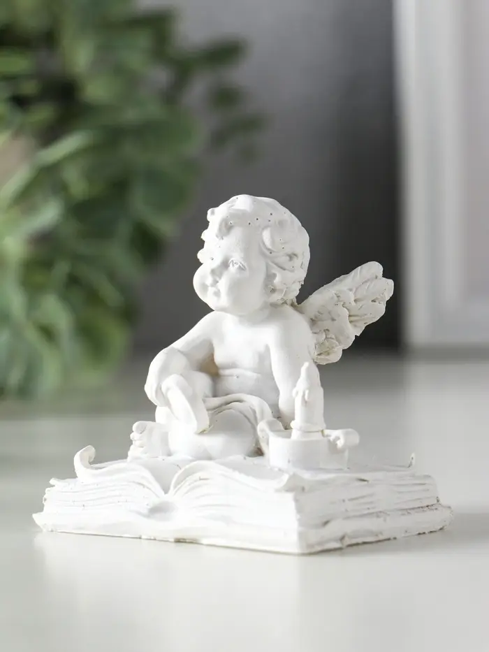 Сувенир полистоун "Ангелок с лупой на книге" белый 7,7х5х7 см