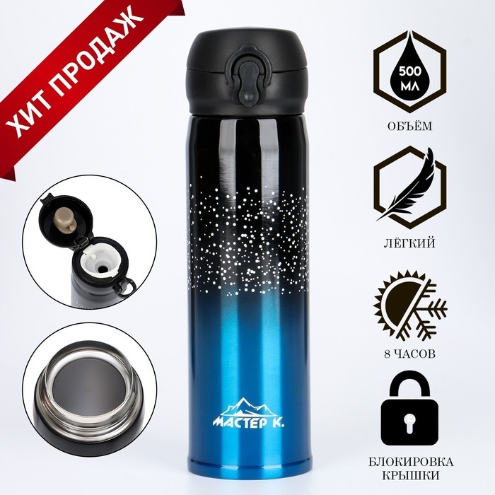 Термос, 500 мл, Топ "Мастер К", сохраняет тепло 8 ч, 6.5 х 21.5 см