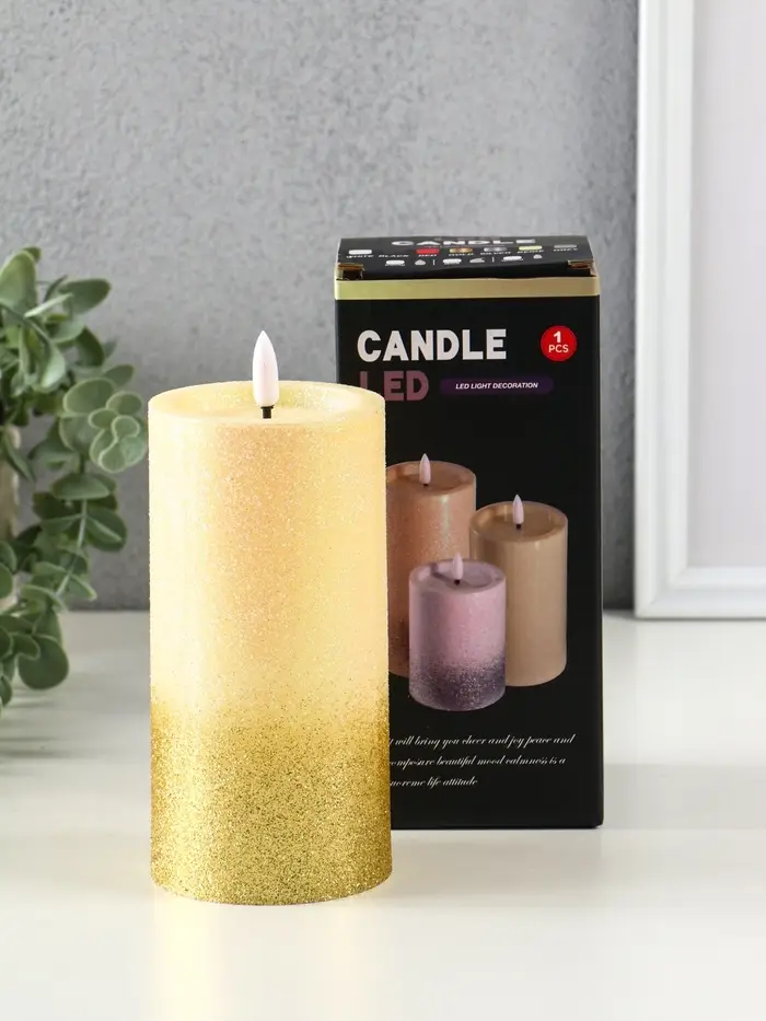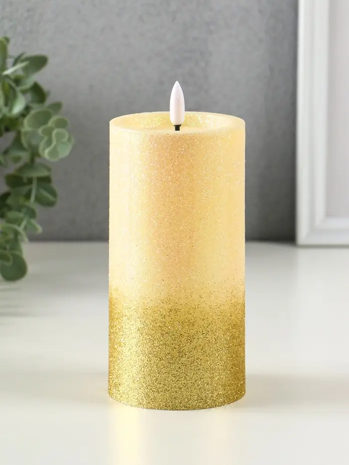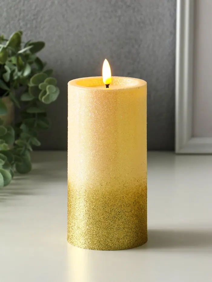 Светодиодная свеча LED RISALUX «Блёстки» 3хAAA золото 7,5х7,5х15 см