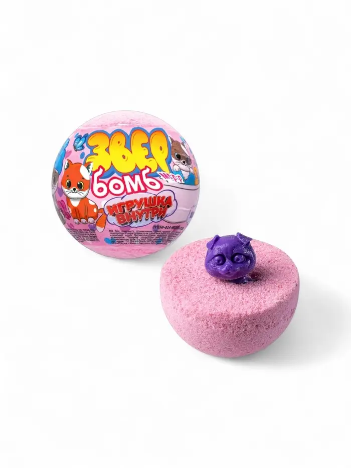 Бомбочка для ванн с игрушкой "звер бомб" аромат клубники, 130 г