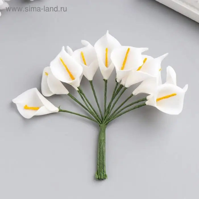 Декор для творчества "Белые каллы" (набор-букет 12 цветков) 10 см