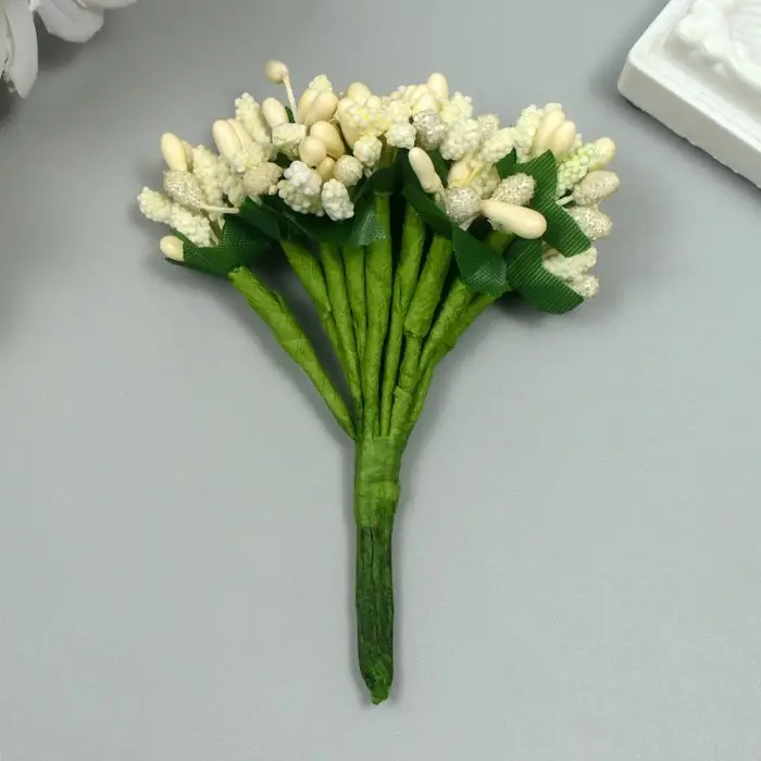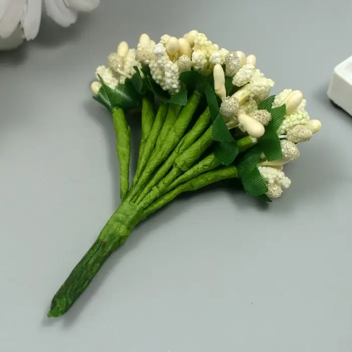 Цветы для декорирования "Соцветие" сливочный 1 букет=12 цветов 8,5 см