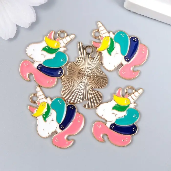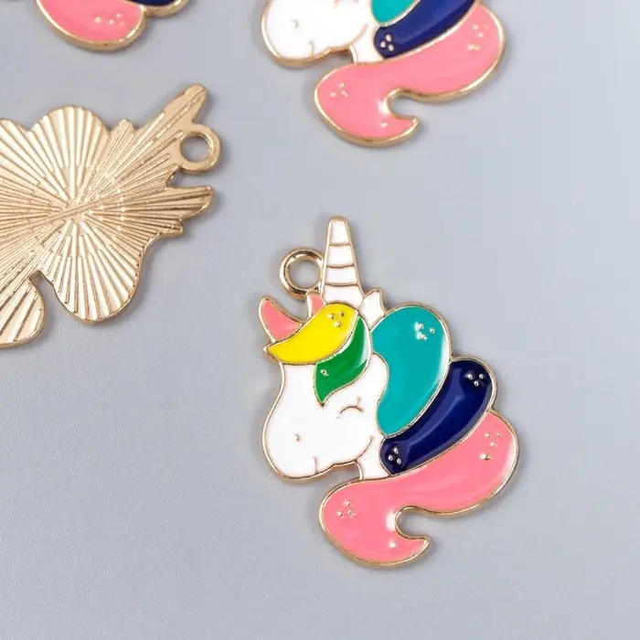 Декор для творчества металл, эмаль «Единорог с радужной гривой», 3×2 см