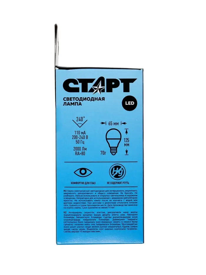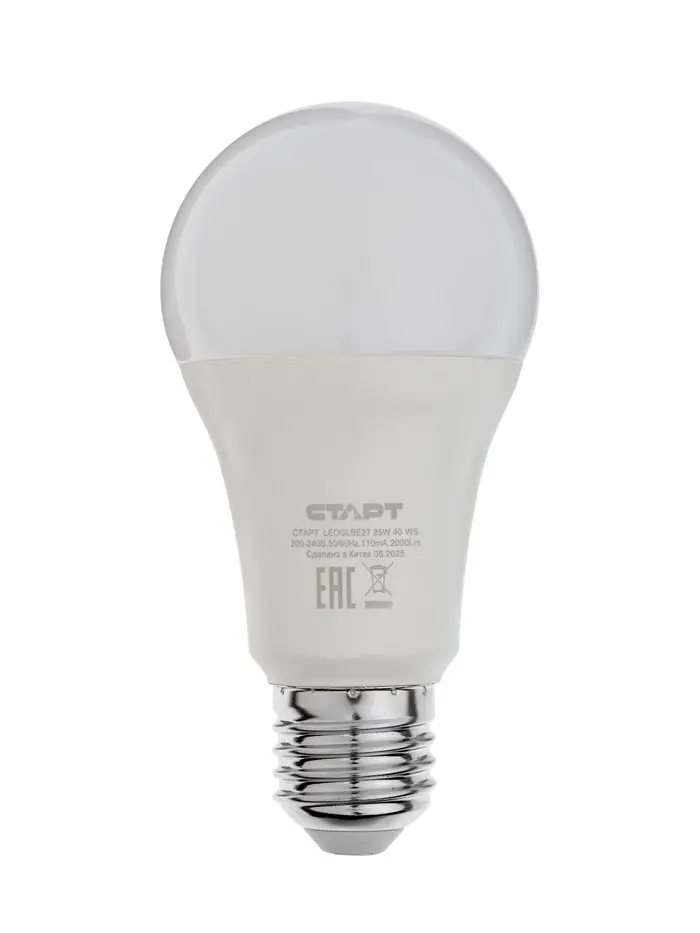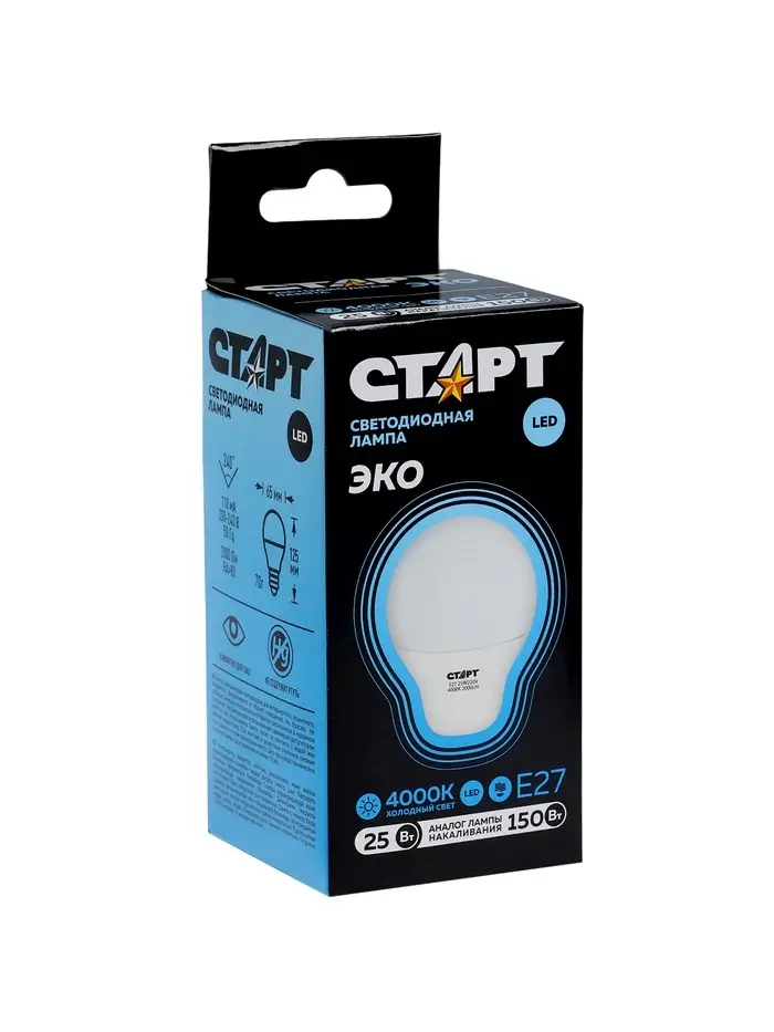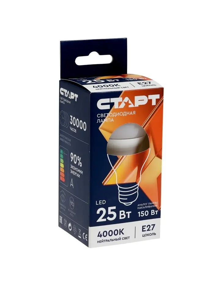 Лампа светодиодная СТАРТ, 20 Ватт, Е27, А60, 4000К, 1600 Лм, холодный (нейтральный) свет