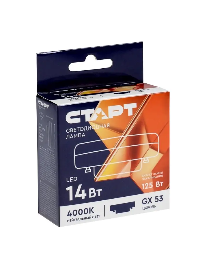 Лампа светодиодная СТАРТ, 14 Вт, GX 53, 4000К, 1120 Лм, холодный свет (нейтральный)