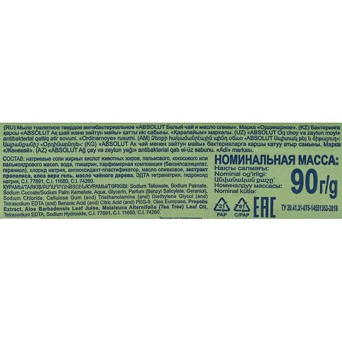 Мыло Absolut Nature «Белый чай и масло оливы», антибактериальное, 90 г