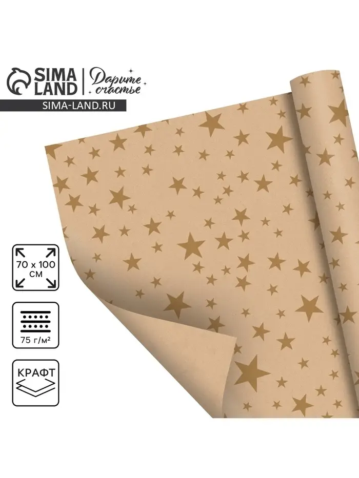 Бумага упаковочная крафтовая «Звёзды», 1 лист, 70 х 100 см