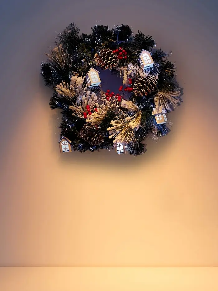 Венок фиброоптический «Заснеженный», d=50 см, 8 режимов