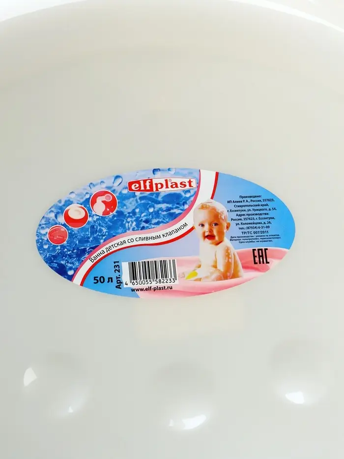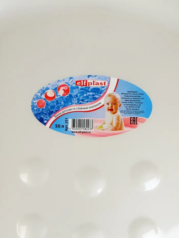 Ванночка детская со сливным клапаном 50 л, цвет белый