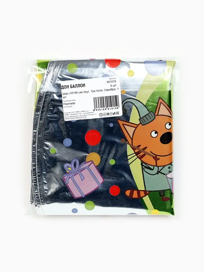 Воздушный шар фольгированный 18" круг "Три Кота, серебро" набор 5 штук