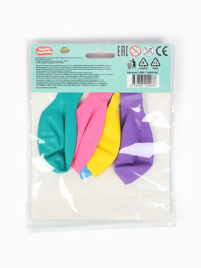 Воздушные шары латексные 12" "Малышарики" набор 5 шт.