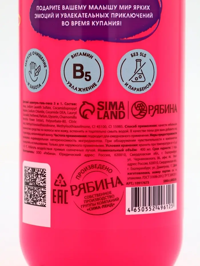 Детский шампунь-гель-пена 3в1 "Монстрики", 400 мл, аромат арбузные дольки