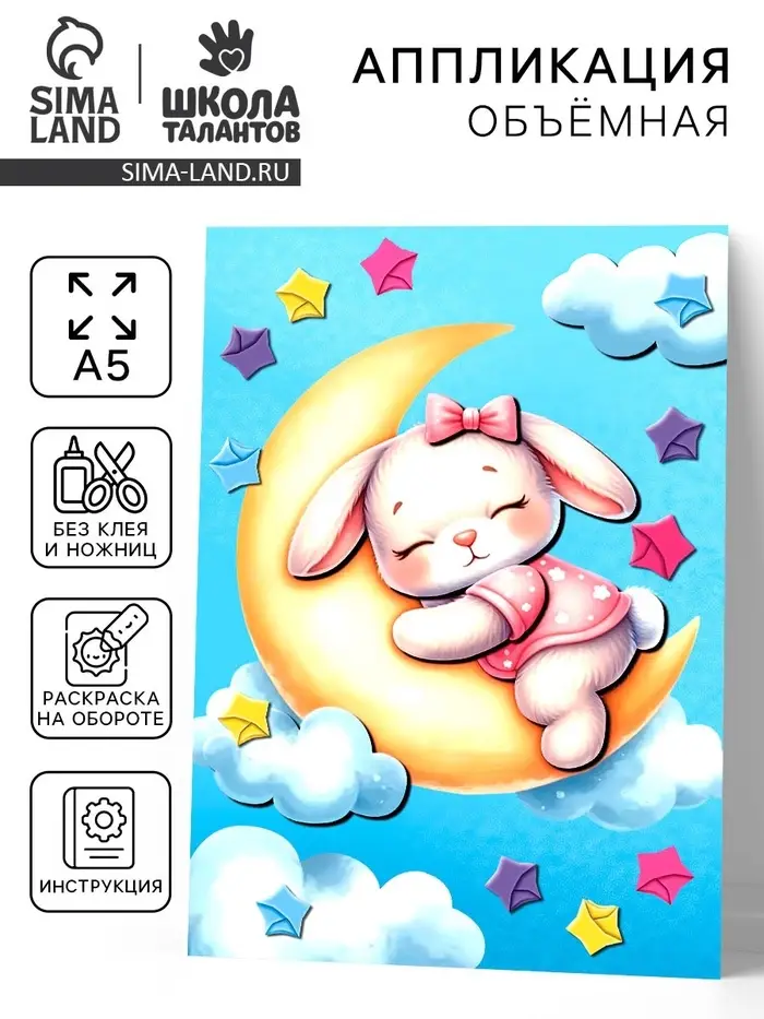 Объемная аппликация со звездочками оригами "Зайка на облаке"