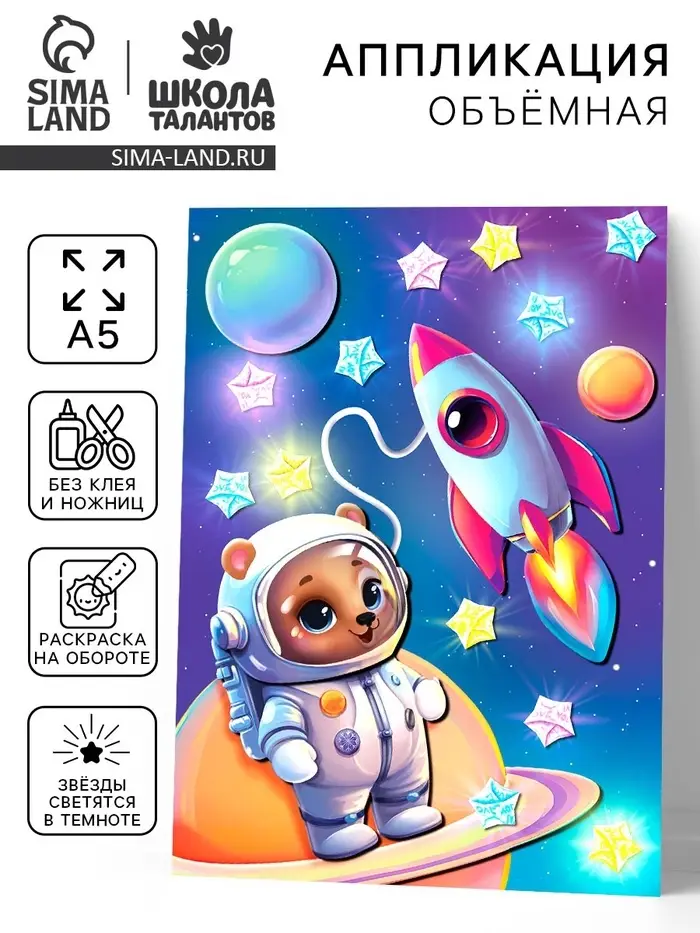 Объемная аппликация со звездочками оригами "Мишка в космосе"
