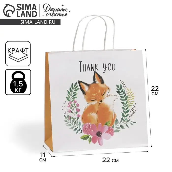Пакет подарочный, упаковка, «Благодарю», 22 х 22 х 11 см