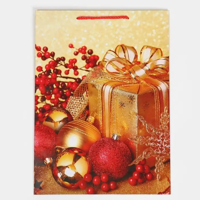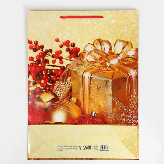 Пакет подарочный новогодний ламинированный «Поздравляю», L 28 х 38 х 9 см