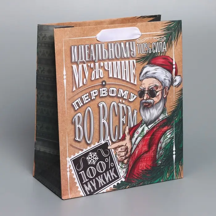 Пакет подарочный новогодний крафтовый вертикальный «Идеальному мужчине», ML 23 х 27 х 11,5 см