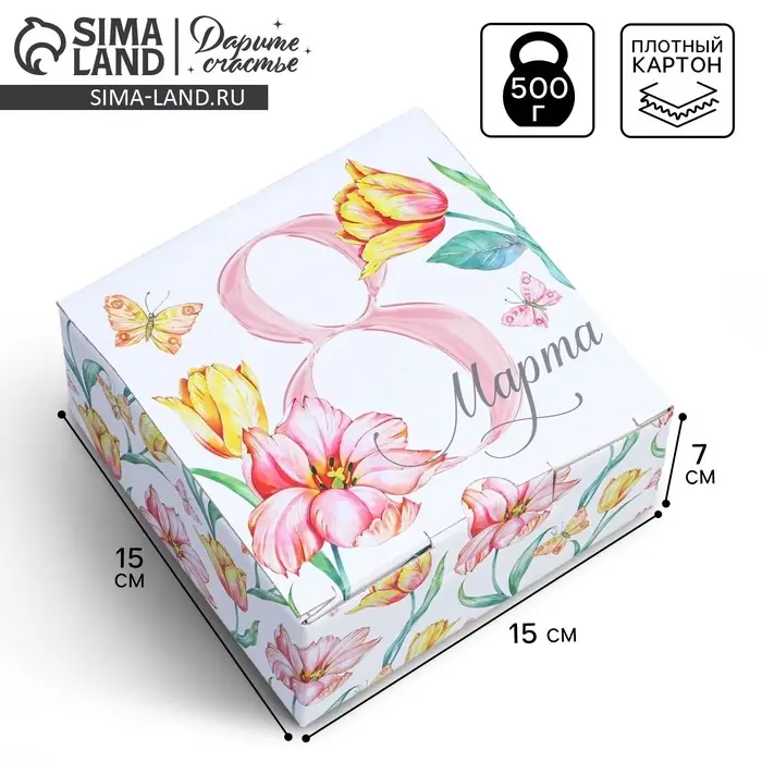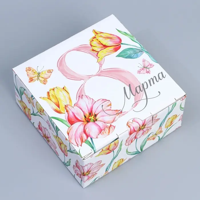 Коробка подарочная сборная, упаковка, «С 8 марта», 15 х 15 х 7 см