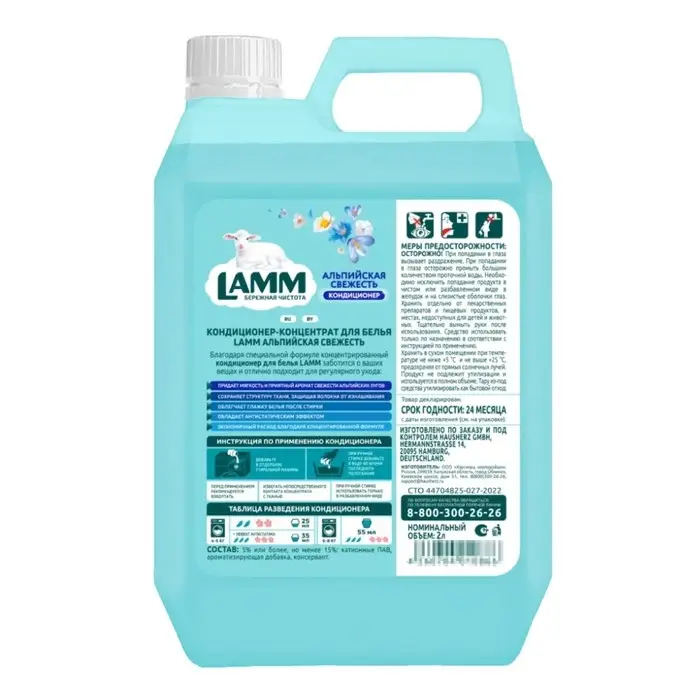Кондиционер-концентрат Lamm «Альпийская свежесть» для белья для белья предназначен для придания тканям мягкости и приятного аромата.