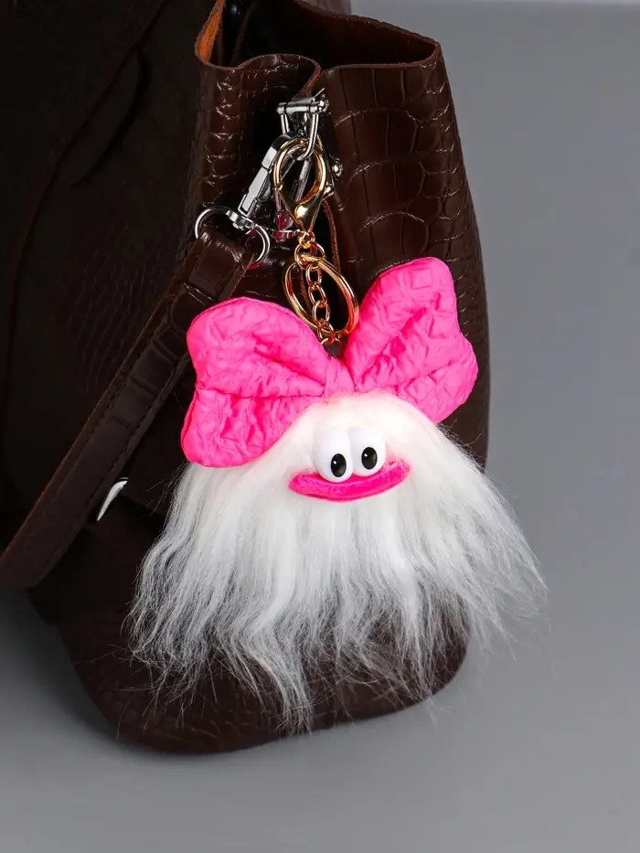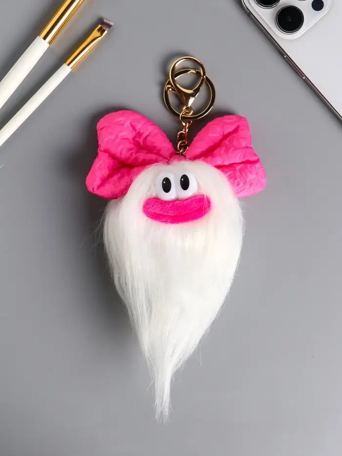 Пушистик на кольце "Чучундра с бантиком" белая 18х10х5 см