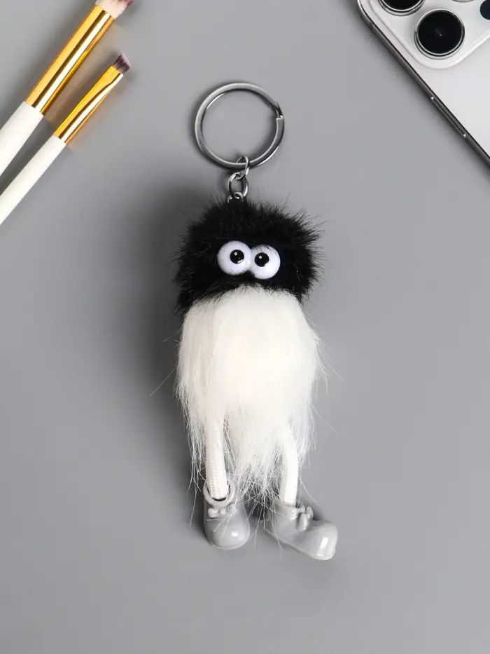 Пушистик на кольце "Лохматый чудик" чёрно-белый 17х4,5х4,5 см