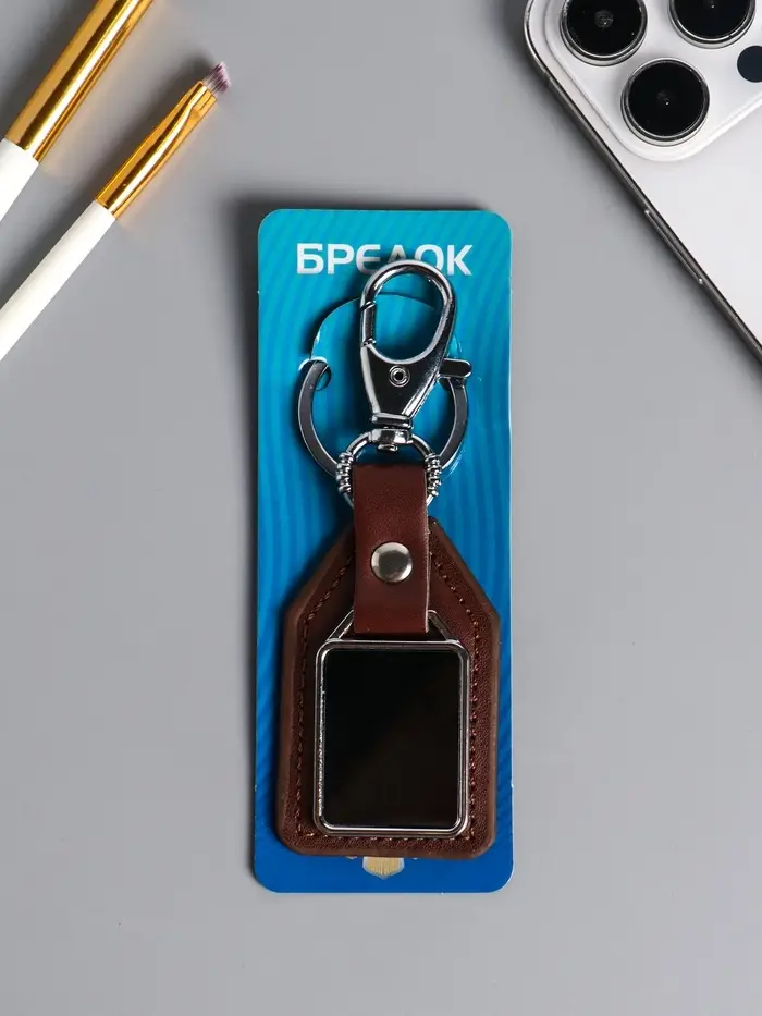 Брелок под нанесение кожзам, металл "Бейдж" размер окна 3,2х2,5 см, коричневый 11х4х0,7 см 1090438