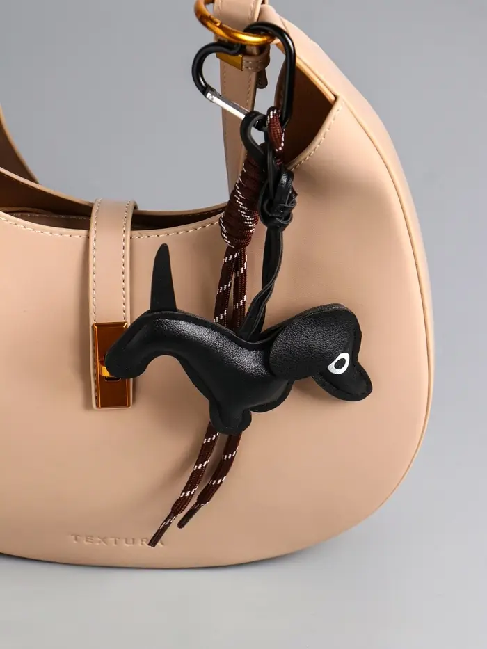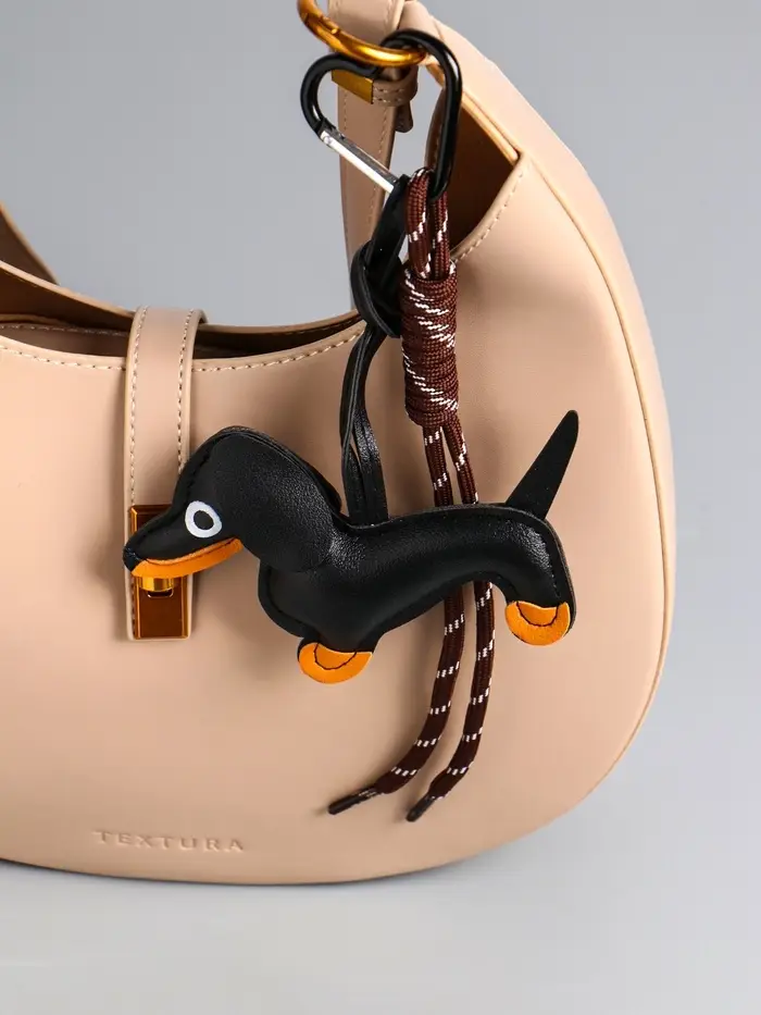 Брелок на карабине кожзам, текстиль "Такса" с узлом 25х13х1,5
