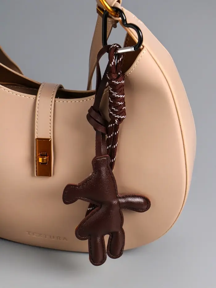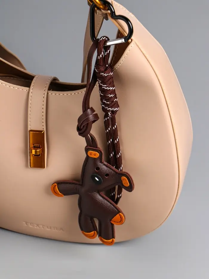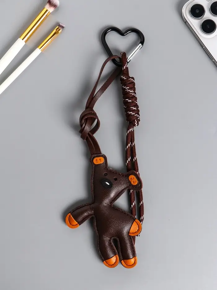Брелок на карабине кожзам, текстиль "Медведь" бурый, с узлом 27х8,8х1,5 см