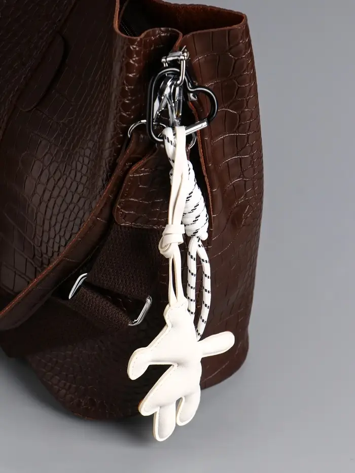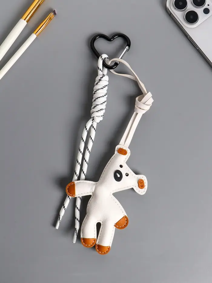 Брелок на карабине кожзам, текстиль "Медведь" белый, с узлом 27х8,8х1,5 см