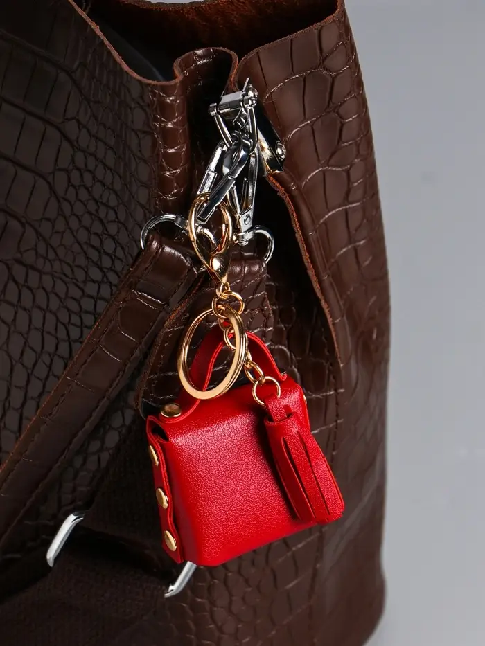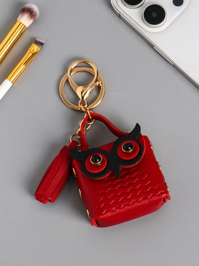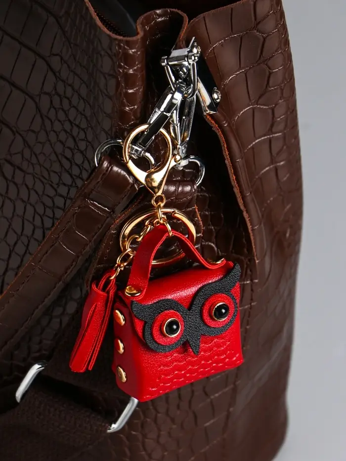 Брелок кожзам с карабином, с кистью "Сумочка. Сова" бордо 5,2х2,5х6 см