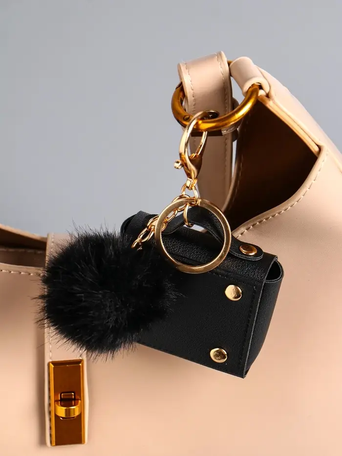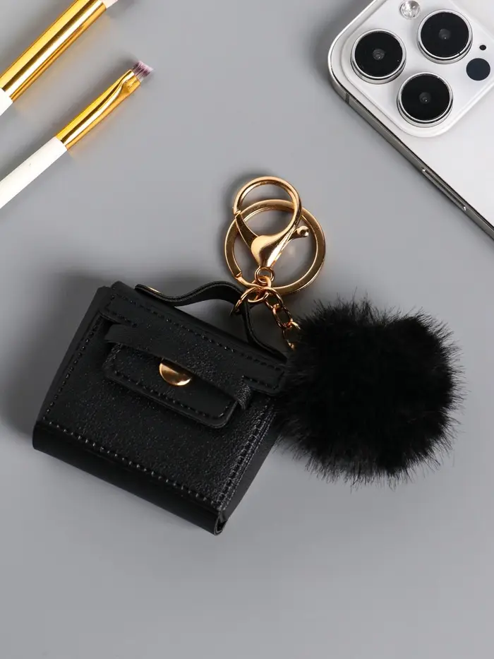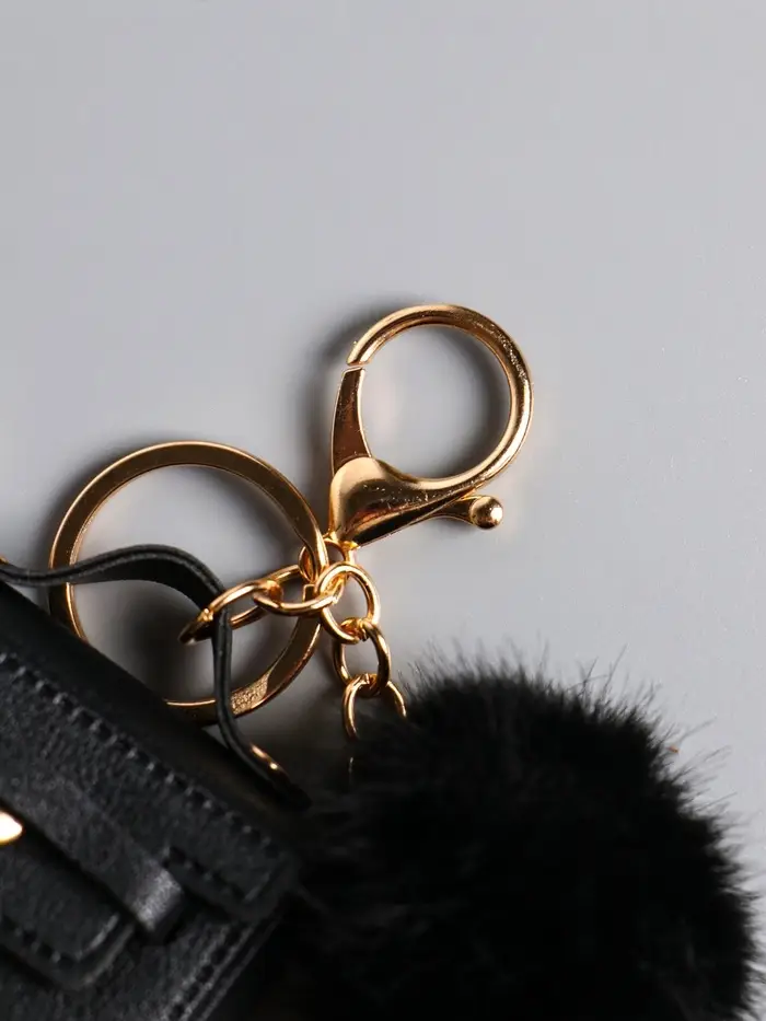 Брелок кожзам с карабином, с пушистиком "Сумочка" чёрный 5,8х2,4х5 см