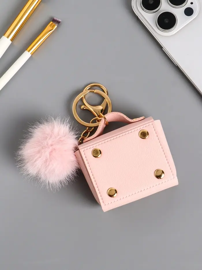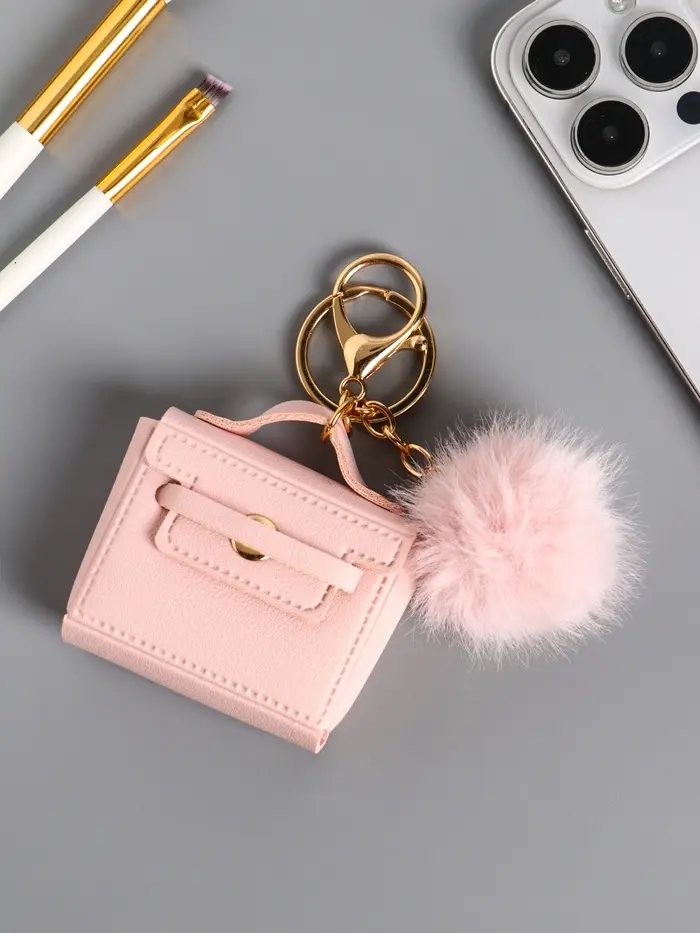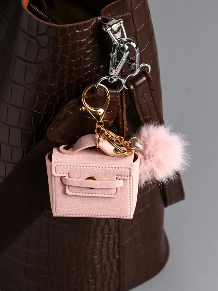 Брелок кожзам с карабином, с пушистиком "Сумочка" нежно-розовый 5,8х2,4х5 см